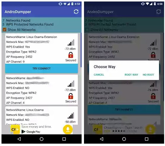 AndroDumpper is undoubtedly one of the most rated and popular hacking tool for android device. The app has been designed to strictly help you test your WiFi from WPS vulnerability. The app works conviently and has a simple user interface. AndroDumpper main purpose is to try to connect to WPS enabled Wifi Routers that have WPS vulnerability using some algorithms to connect to the Wifi. The app works both on rooted and non-rooted android device. However certain features are limited if perhaps your device isn’t rooted. Currently over 5 million people downloaded androdummper from the Google playstore.