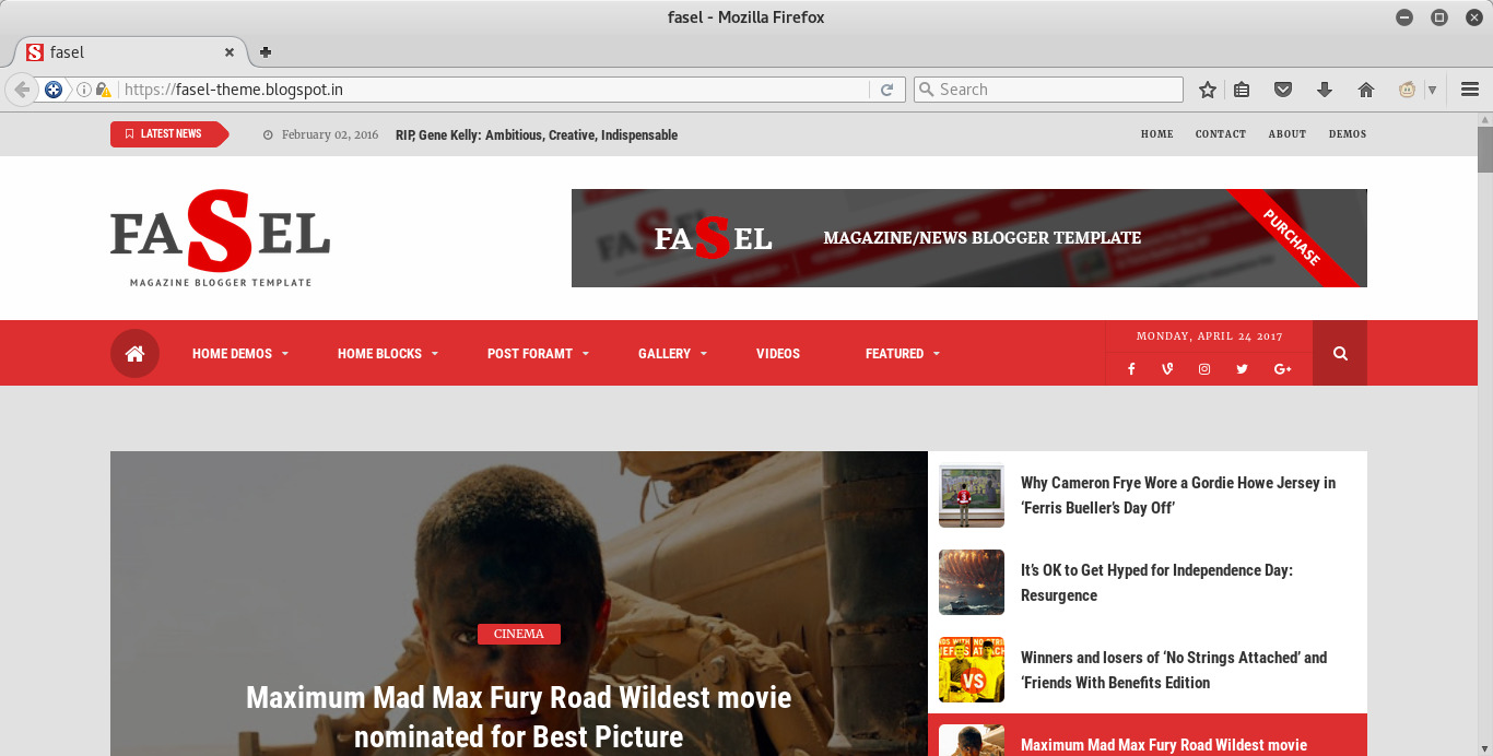 Fasel is a responsive and awesome blogger template best suitable for news and magazine websites. The template brings a lot of smart features, and it supports variety of blog niche such as fashion, technology, travel, lifestyle, decoration, multimedia and personal blogs. Fasel brings a clean and minimal design, and it’s capable of revamping your blog’s look and feels. If you are looking for a blogger theme, which brings a fully responsive design, then fasel will be the perfect choice. Fasel unveils an unlimited theme color options, it is SEO optimized, and moreover it supports a news sticker plugin. Fasel blogger theme brings a user friendly powerful admin panel, with a professional options which will help you to customize the template without editing any codes. Fasel offers a free and paid version, but you’d know that the paid version offers high quality features than its counterpart.