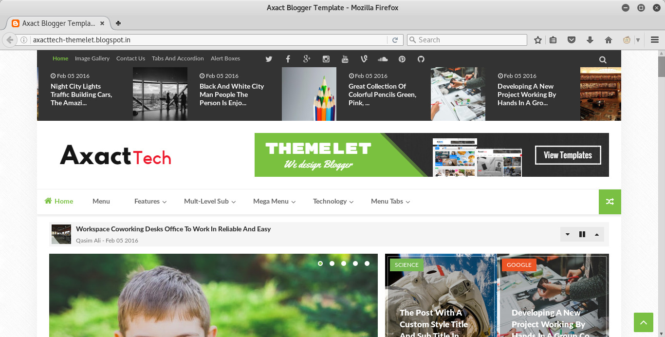 Axact is one of the modern and flat responsive blogger template that is most suitable for a magazine, technology, news, sports, games and multipurpose blog. This template brings a lot of unique features coupled with flexible design that allows you to change the themes color, font and size. Axact excels both on the front-end usability and admin back-end user experience, the template is backed up with a full documentation that clearly details how to set up your blog fastly. Axact supports a drag and drop widgets, it’s Adsense ready, it unveils different button style and a multi level dropdown menu. Apart from this, the main features of axact blogger template includes SEO, fast loading and 5 unique homepages preceded with pro shortcodes and Ajax search result. Furthermore axact brings a 24 hours support team and it’s currently the template we’re using over here at techviola.