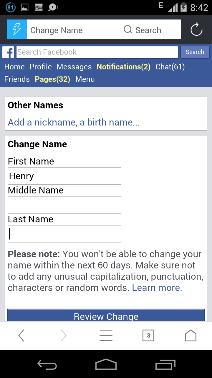 #2. Create Single Name On Facebook