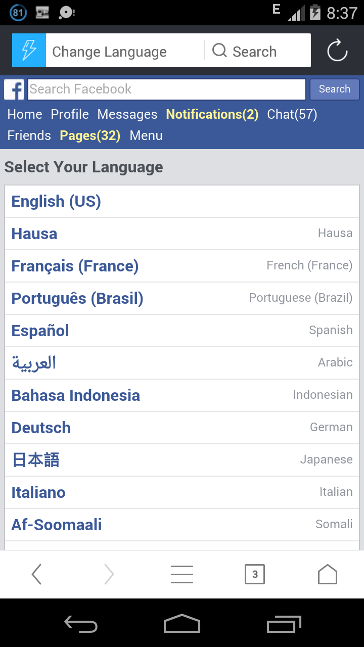 Firstly log in to the facebook account that you wish to create a single name. Navigate to “Settings and Privacy” which should be at the bottom of facebook homepage. Tap on it and on the next page, click on “Choose Language”.