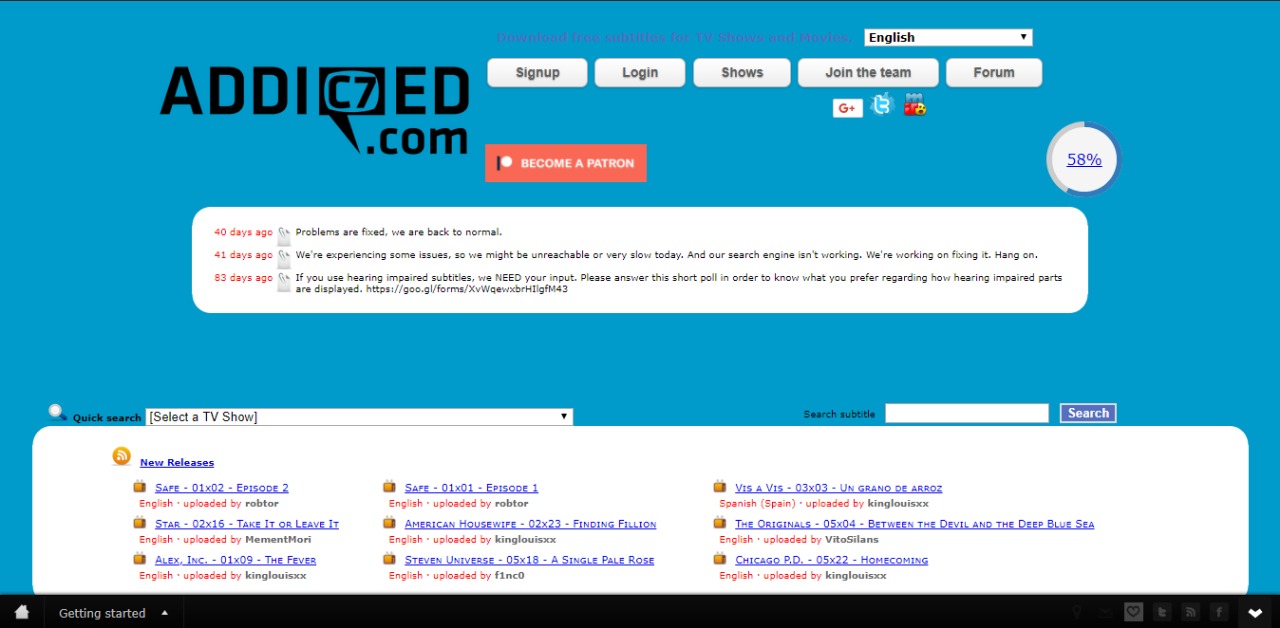 Next up, we have Addic7ed. One of the most popular place to download subtitles for free. Featuring a fast, comprehensive and an up-to-date subtitles for the latest movies and TV shows, Addic7ed is actually my preferred destination to download subtitles without fear of malware. One of Addic7ed unique strong point is none other than the “Quick Search” which allows users to select from a “slew of TV Shows and instantly find the appropriate subtitle they are looking for. On Addic7ed, you will get to find TV Shows and ‘Movies subtitles in English, Portuguese, French, Bulgarian and other languages.