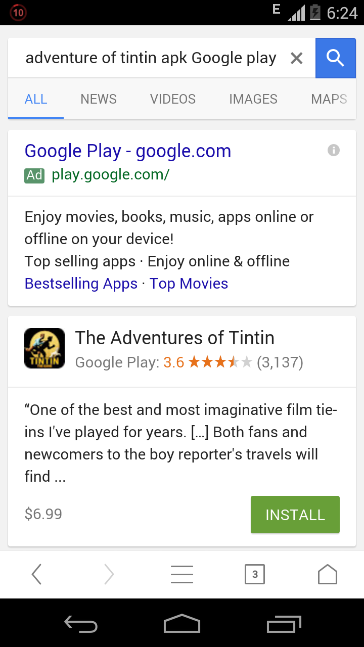 Once your device has rebooted, simply search for the name of the app or game that claim they’re incompatible with your device from Google search engine and tap on the Google play store link.