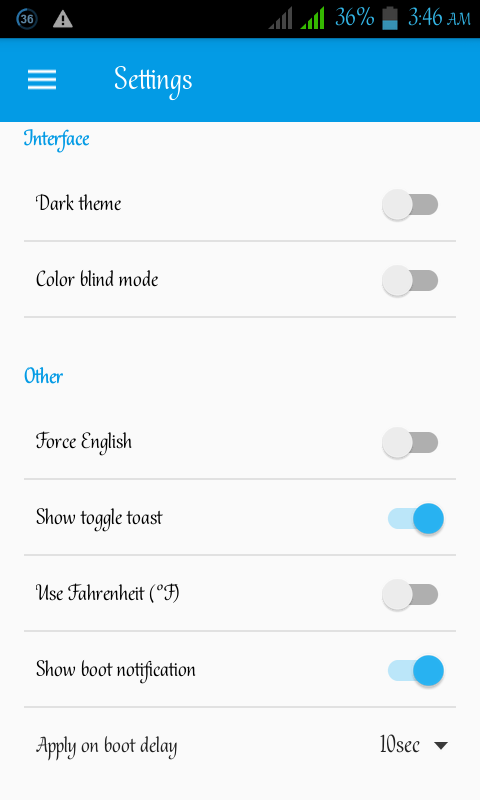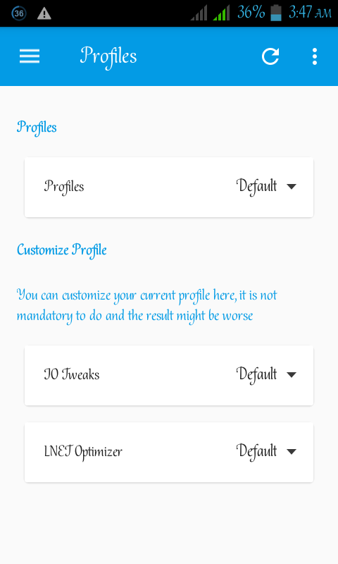 The next option is the CPU Tuner. There isn’t much to tinker here, it’s main function is to improves the performance of your android phone with a little more battery draining in counterpart. However you can choose not to toggle it.