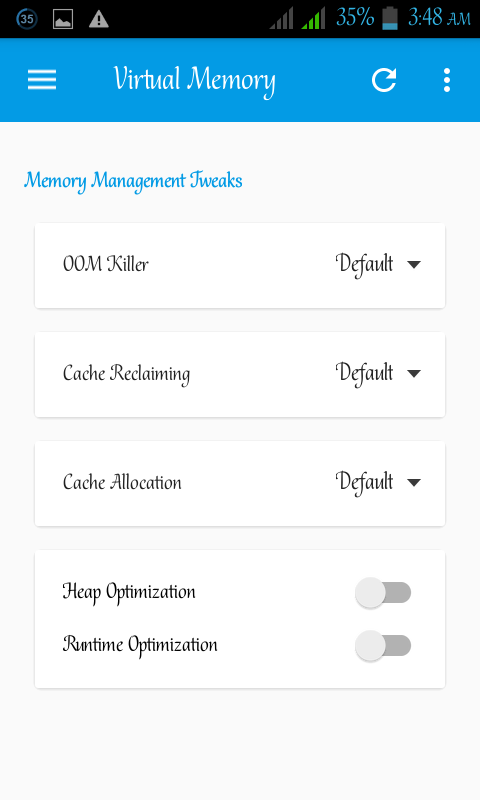 The Virtual Memory option can also help improve your device performance, however i haven’t figured out it’s main function but it certainly can help in improving your device performance and battery life.