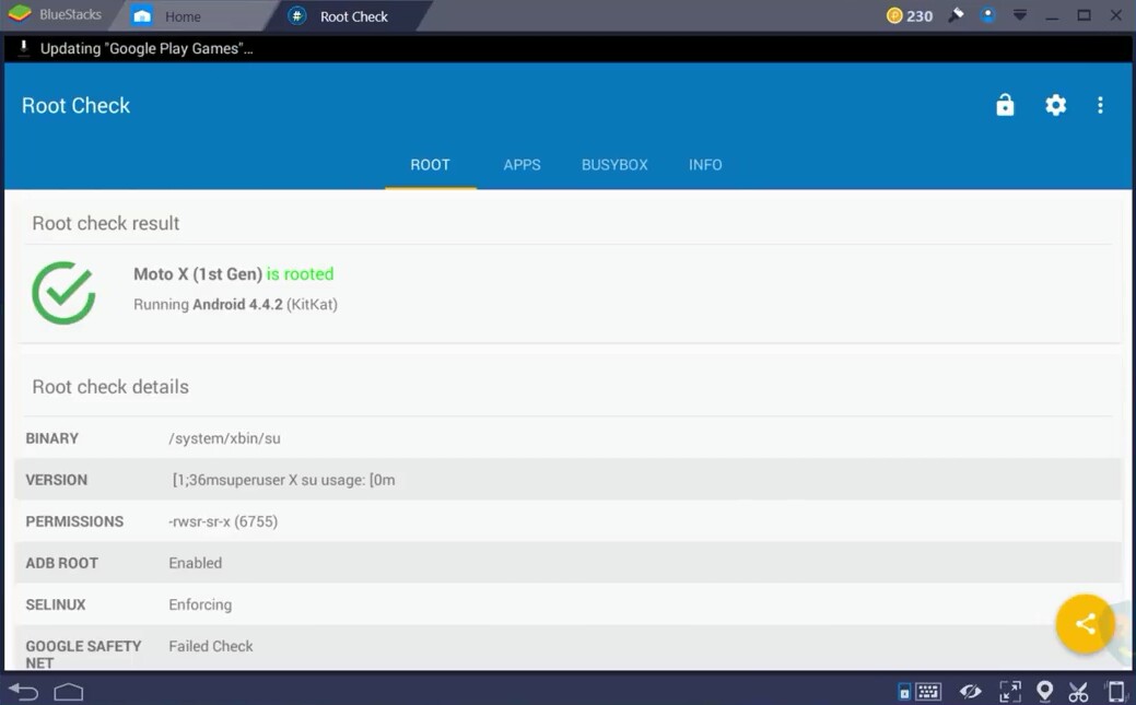 Now go to “My Apps” on BlueStacks and open root check. From here, you’ll see that your BlueStacks rooted. That’s it, you can now close the BlueStacks tweaker.