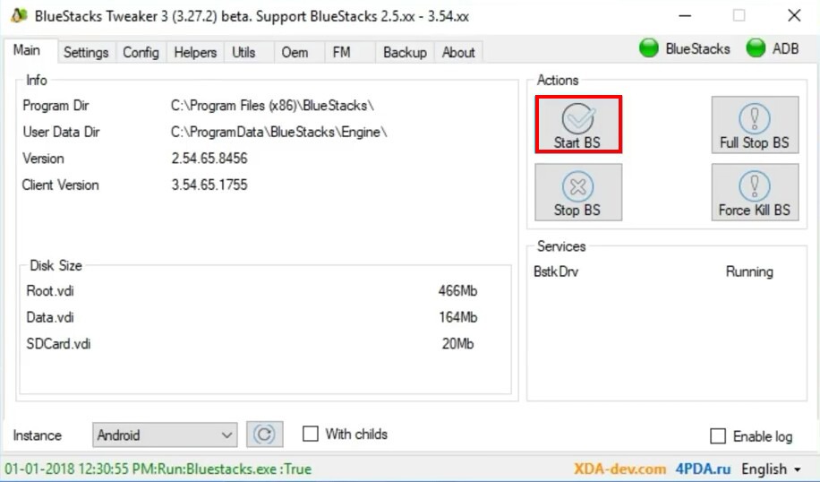 Next up, head back to BlueStacks tweaker “Main” tab and click on the Start BS button This will automatically make the patch and unpatch options accessible and will also start the BlueStacks program.