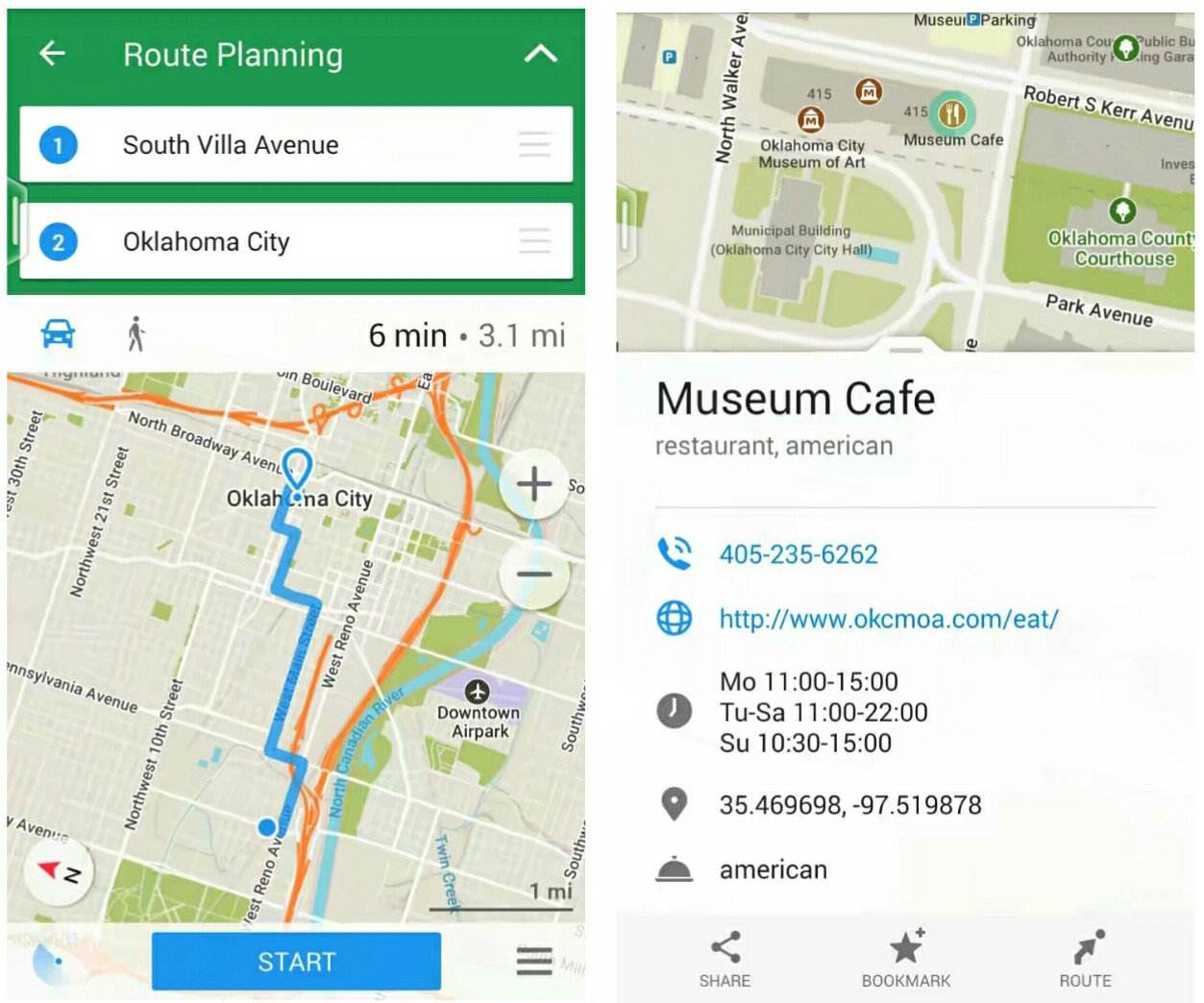 Navmii is an accurate free offline maps for Android and it’s ideal for taking abroad to avoid high roaming costs. The app brings a real-time traffic and road information to help you find your way around. Navmii also offers a free voice-guided navigation with support for local searches using postal code or address even without a data connection. Navmii is undoubtedly easy and simple to use, it works with GPS only and comes with points of interest. Offline maps are stored locally and once you have had navmii setup, it will plot the best route for you. Aside from the driver’s score feature it brings, navmii is really a great offline maps for Android.