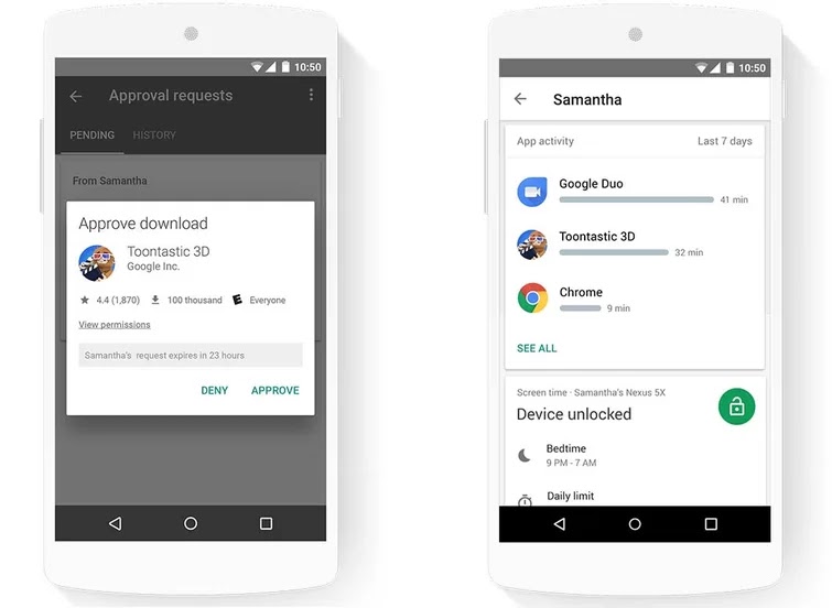 Rules such as managing the apps your kid can use is easy to set up with Family Link. For example, you can choose either to approve or block the apps your kid wants to download from the Google Play Store. The Google’s Family Link app also offers an option to see how much time your kids spends on their favorite apps with weekly or monthly activity reports. This will enable parents to set a daily screen time limits for their device and at the same time, it ensures an adequate & early bedtime sleep for your kids. Note; that some app activity, such as for music players and messaging apps that run in the background of your kid phone, will not be fully tracked with the weekly or monthly activity reports. Apart from, the Google’s Family Link app, also remotely locks your kid’s device when it’s time to play, study, or sleep.