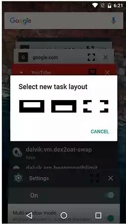 8. To split app select any of the recent open app and a box will appear, on select new task layout just make your choice and viola you will see it the multi window feature working on your android 6.0 marshmallow device.